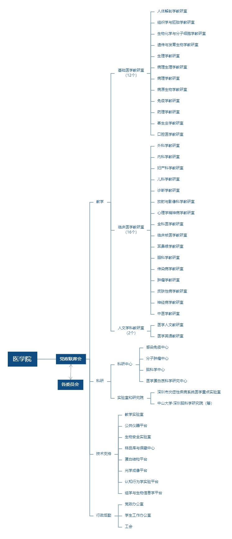 导航痕迹 中山大学医学院 学院概况 机构设置 医学院组织架构 学院概况 学院简介 学院院徽 现任领导 历任领导 杰出学者 机构设置 医学院组织架构 医学院各类委员会/小组成员名单 行政办公 学院影画 医学院组织架构