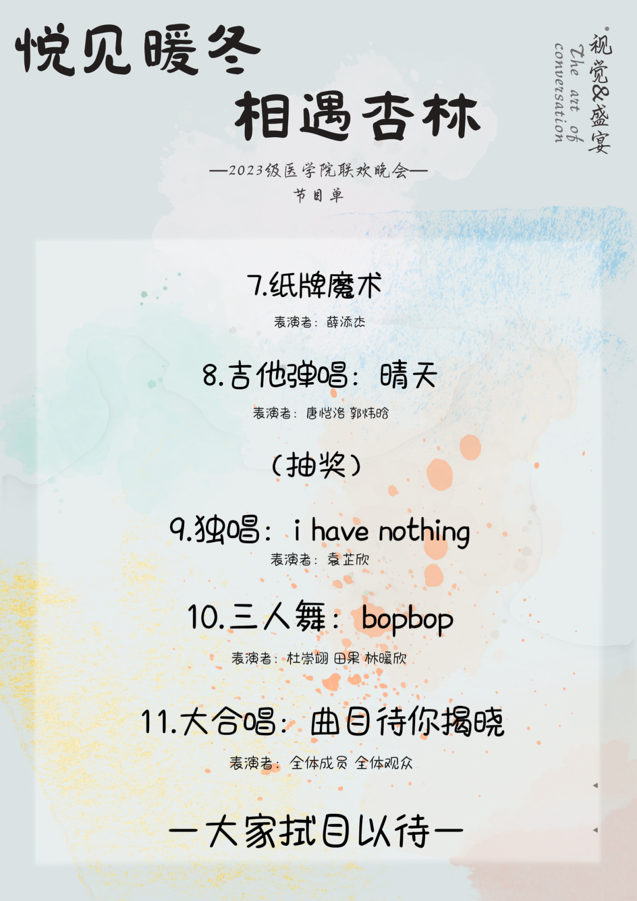 医学院多才多艺的同学们准备了许多精彩纷呈的节目,请准备好尖叫和掌声