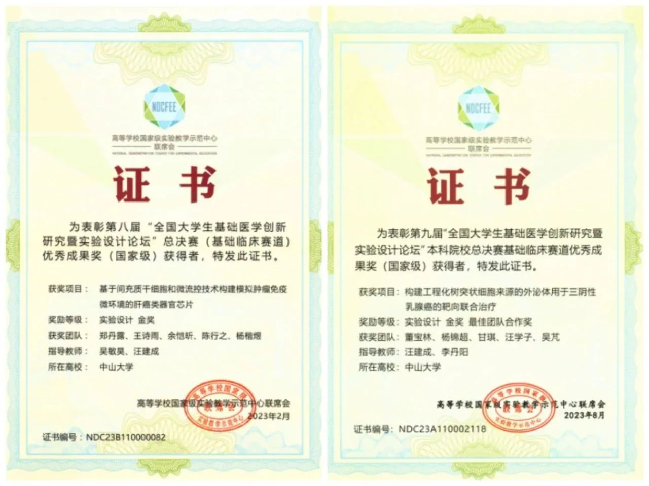 (两支队伍获“全国大学生基础医学创新研究暨实验设计论坛”金奖)