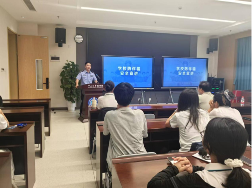 钟俊颖警官首先为同学们带来“防诈骗”安全宣讲。他根据校园常见诈骗类型,结合真实案例深入拆解诈骗话术套路,重点强调保护个人信息、不随意点击陌生链接、不盲目转账汇款等防骗要点,帮助同学们提升识骗防骗能力。