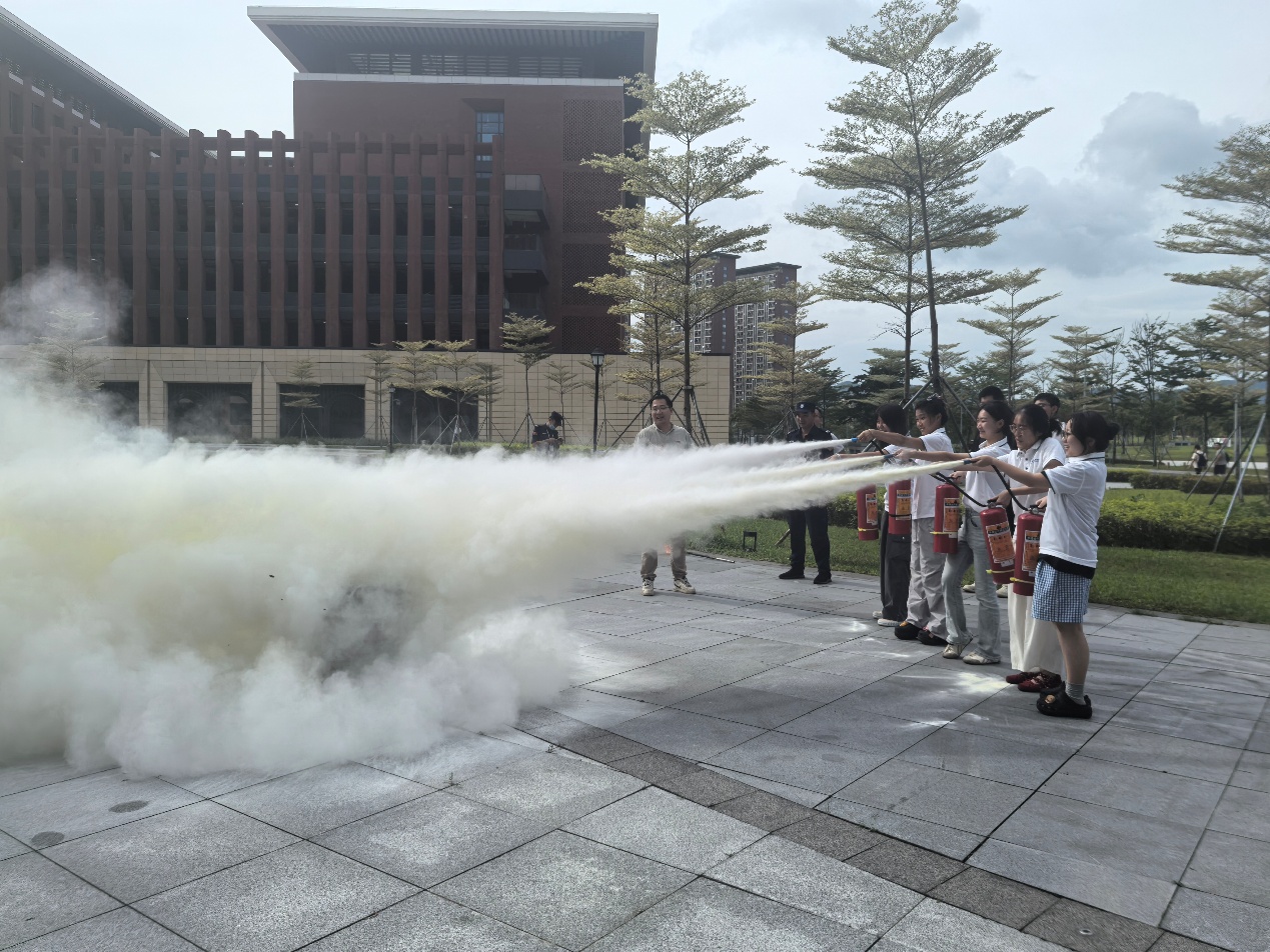 讲座结束后,同学们在医学园以及博济广场进行消防逃生疏散演练和灭火实操。通过模拟真实火灾现场,同学们掌握了灭火器的使用及火场疏散逃生方法,消防安全意识与自救自护能力得到切实提升。