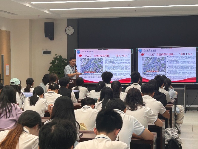 在接下来的思政第一课中,李世阳老师围绕“十五五”规划蓝图,为青马班学员讲授“十四五”以来我国取得的伟岸成就,并引导学生骨干学习二十届四中全会精神,将个人发展融入国家战略,为“十五五”规划落地贡献青春力量。