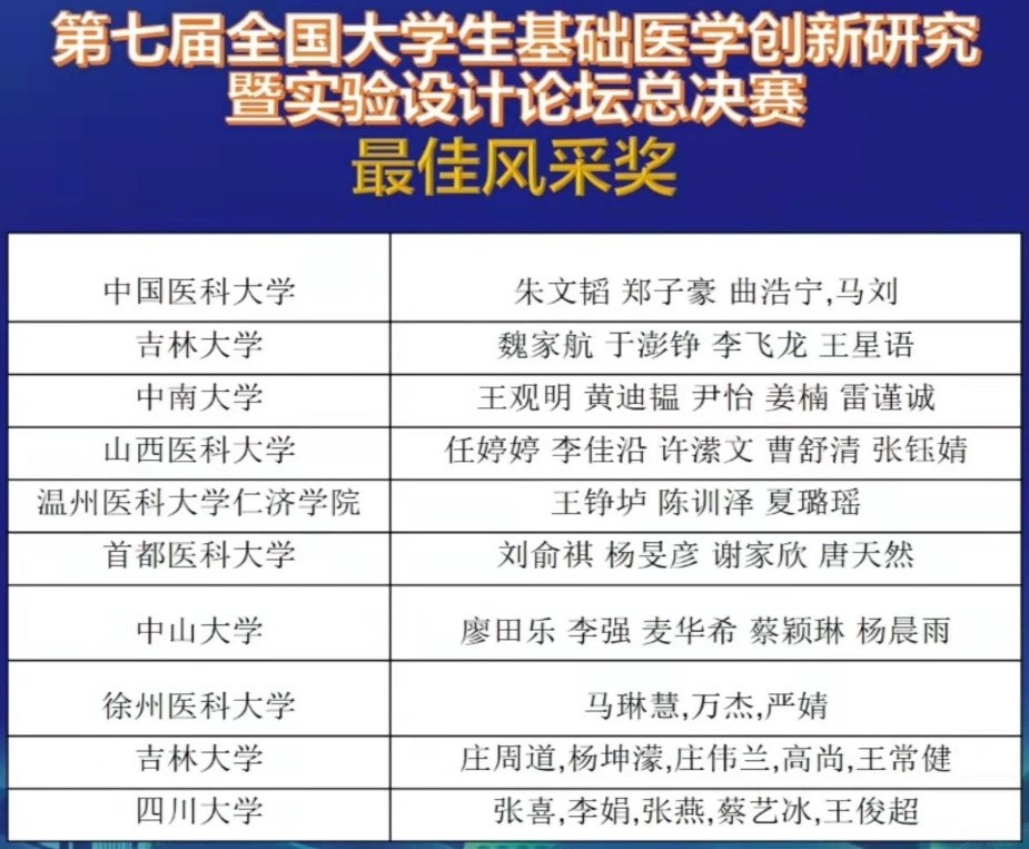 我院代表队喜获第七届全国大学生基础医学创新研究论坛暨实验设计论坛总决赛金奖和最佳风采奖