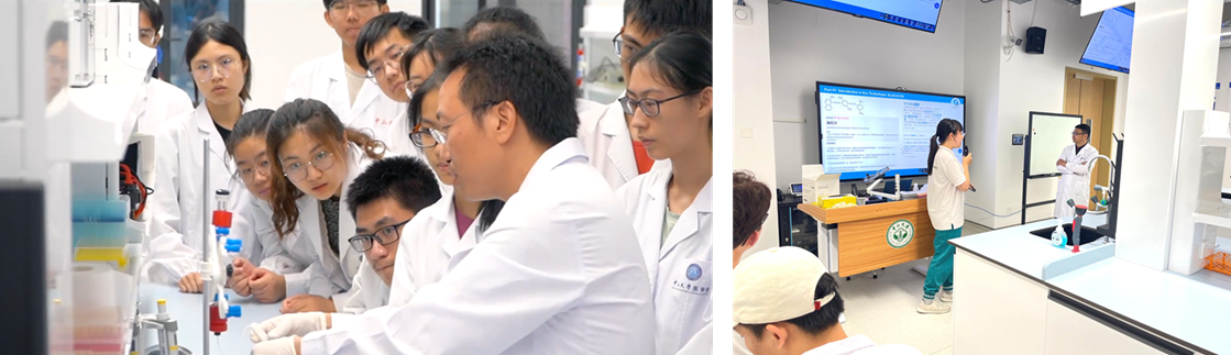实验室承担本科课程《分子医学技能》由生化教研室、免疫学教研室共同开展。课程主体内容为分子生物学在医学中的应用,涵盖了其主要的理论和技术体系,又侧重于医学领域中的应用。课程主体包括分子医学概论、分子医学基本技术、分子免疫技术、分子医学应用性实验、分子医学前沿技术、分子医学课题设计与科研探索等六个部分,旨在全方位、多层次地培养学生在分子医学领域的科研思维和动手能力。该课程由包括杨中汉教授、赵博教授、田国宝教授、刘迎芳教授等近30位学院教师,及黄筚辉研究员、刘朝兴副研究员、陈玉铃主治医师和肖炜主治医师等多位中山七院教师参与授课。