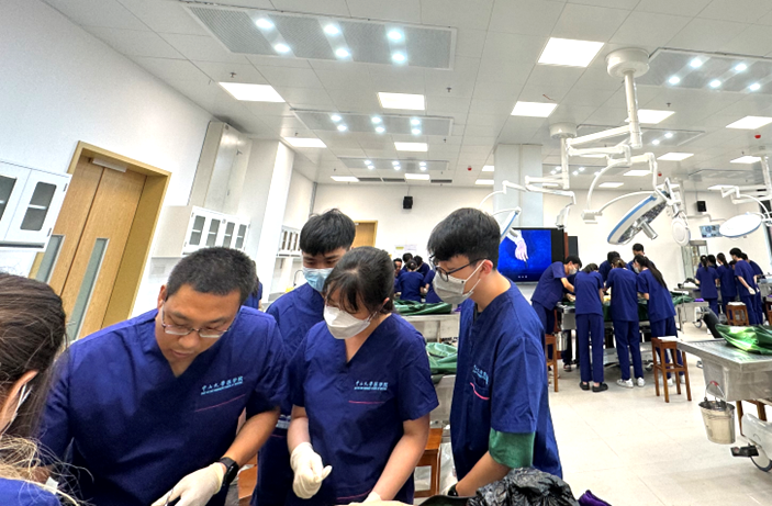 解剖学实验室,依托深圳校区医学园3栋解剖学楼,建成国内领先的“教学—科研—临床—科普”一体化平台。楼内1280平方米的人体生命科学馆,为粤港澳大湾区规模最大的人体形态科学展馆;二层至四层设9间智慧解剖实验室,总面积2700平方米,配备无影灯、数字解剖终端、AI课程助手及价值3000万元的4000余套高端设备,实行预约开放。教研室坚持“基础-临床深度融合”理念,与大学各附属医院临床科室共建课程,理论课推行小班、病例讨论、翻转课堂,实验课以大体解剖操作为核心,辅以虚拟仿真和人工智能,服务本科、研究生及临床医师再教育。现有技术人员3人:孙诗竹、付依昕,于越。实验室年均承担临床医学、预防医学等专业1000余名学生《基础解剖学(含实验)》《临床解剖学(含实验)》教学任务,先后获校多项奖项;医教协同培训方面,师资团队由中山大学教学名师周丽华教授、李峰教授、付饶副教授等领衔,联合深圳市重点学科医院临床专家,共同实施《深圳市医教协同临床解剖实操培训项目》,为区域医师提供规范化、分层次的解剖实训。社会服务方面,依托“医科普”协会和红十字会学生分会,常态化开展心脏听诊、心肺复苏、人体模型拼装、健康科普讲座等科普活动64场,接待社会参观者逾3463人次,打造“科学与人文、专业与公众”相融的生命教育品牌,为深圳及大湾区医学教育和人民健康持续贡献中大力量。
