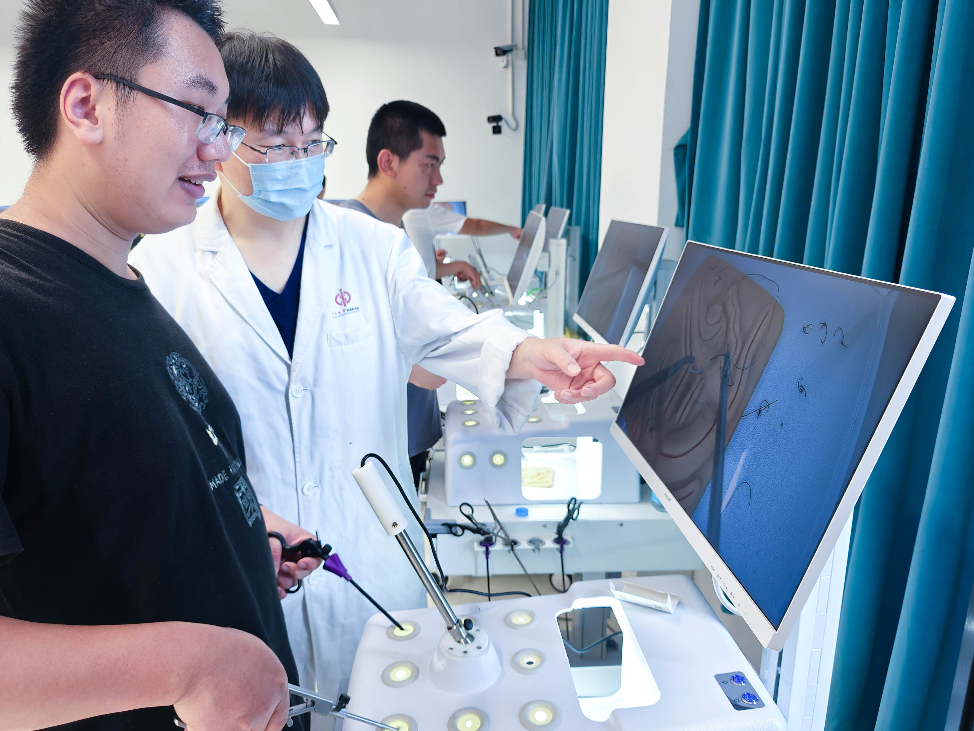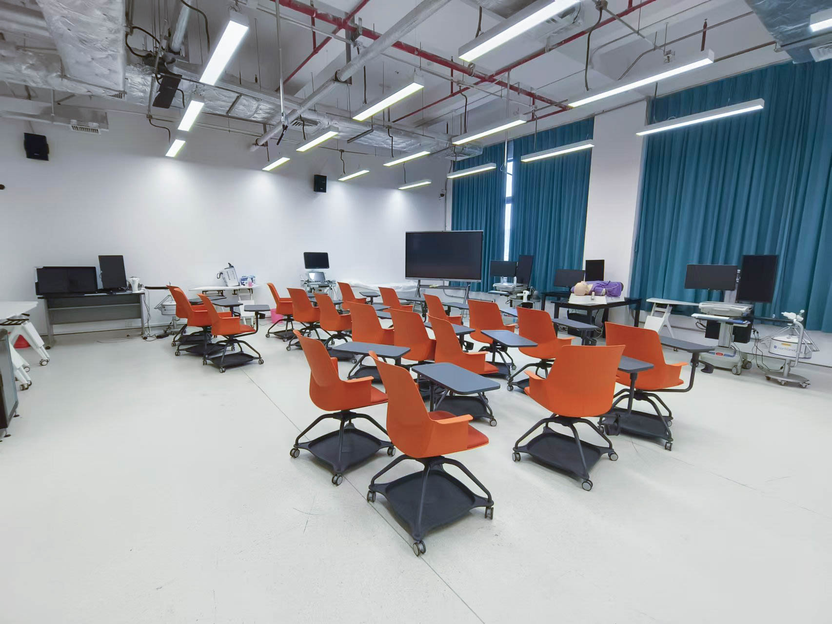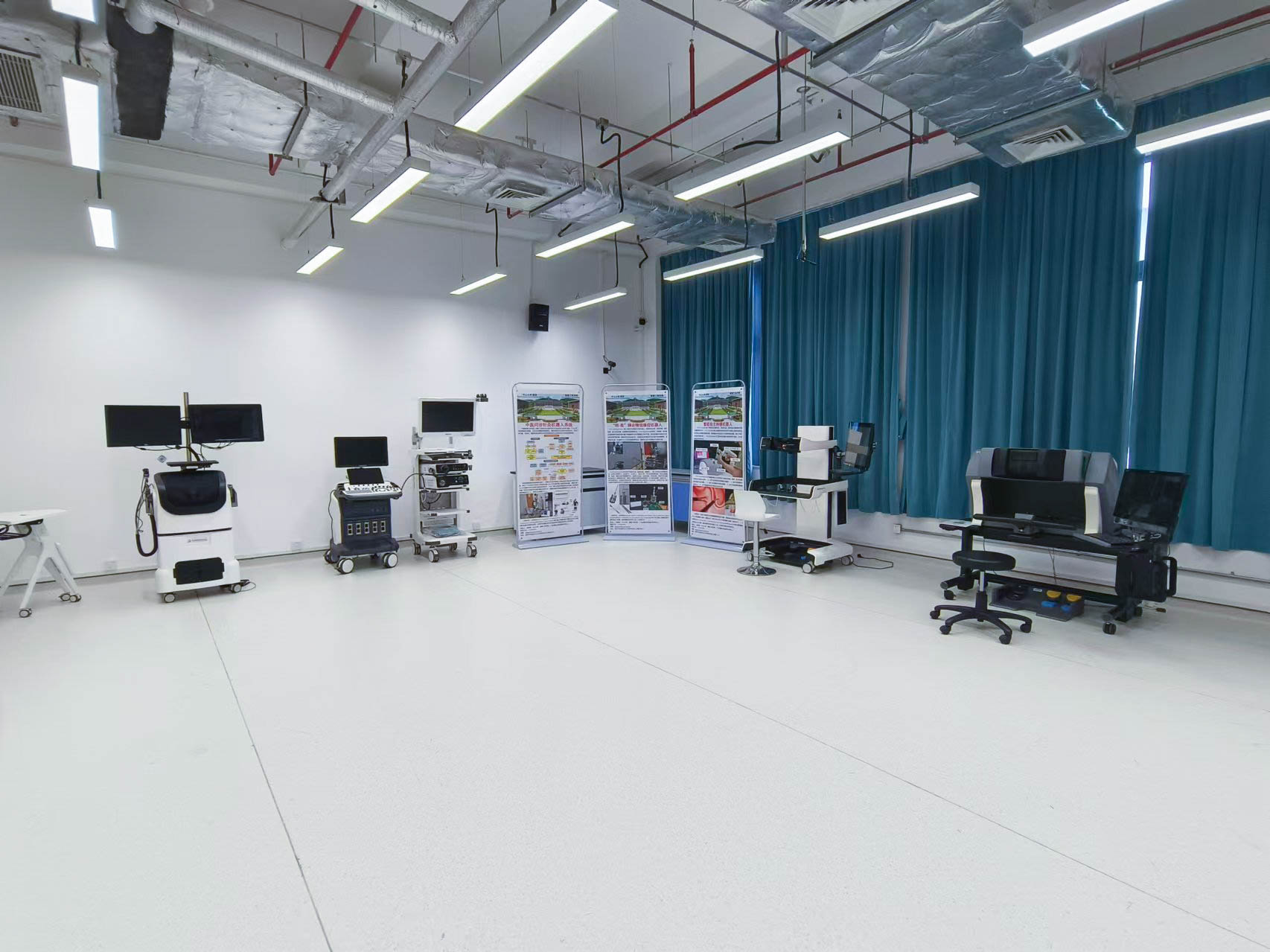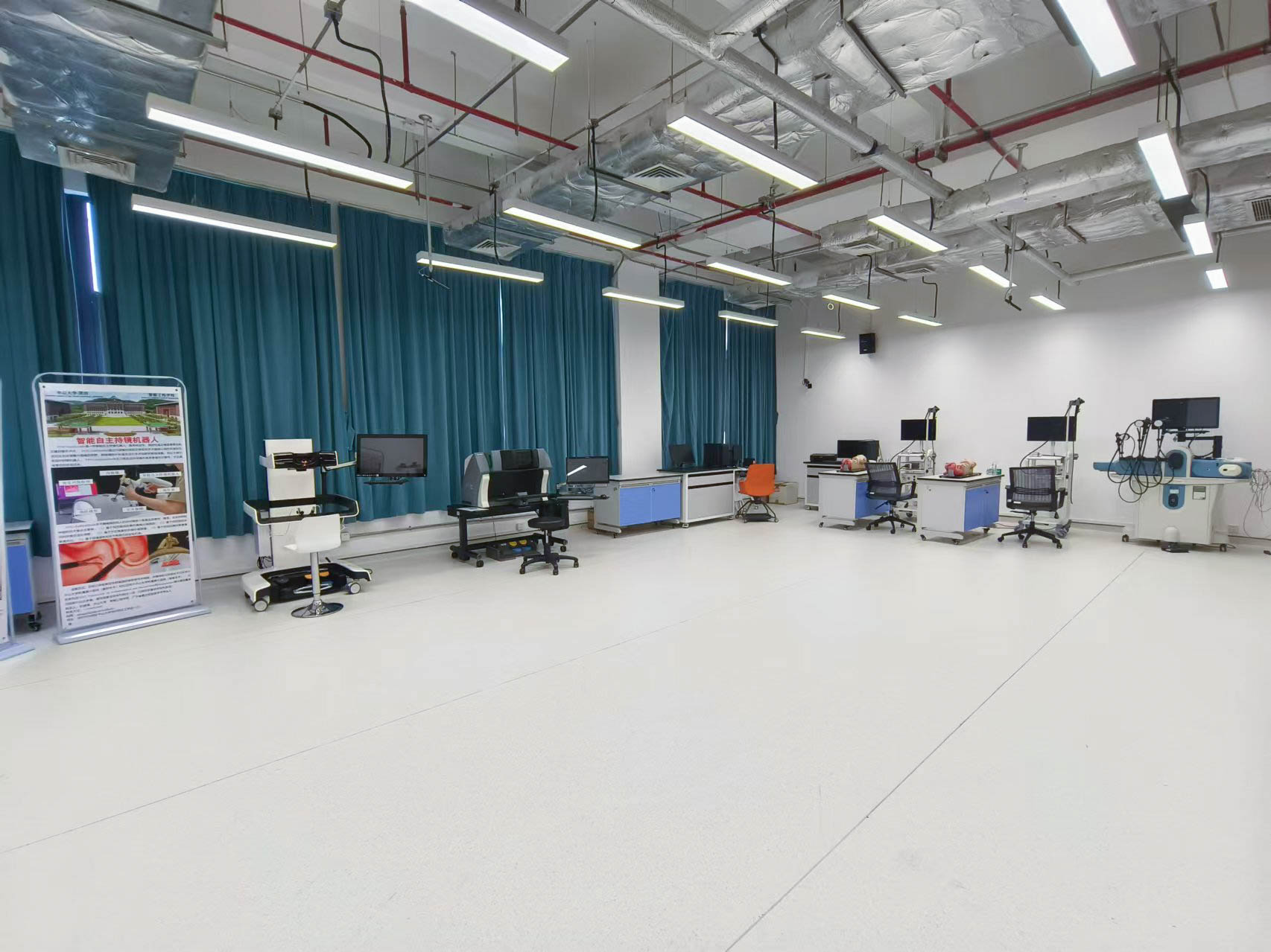 临床专科技能培训室位于医学园1栋5楼东侧,构建了涵盖腔镜技能训练室、超声技能训练室、医工融合实验室和预手术模拟中心的完整教学训练平台,系统推进从基础技能到专科应用的临床能力培养。